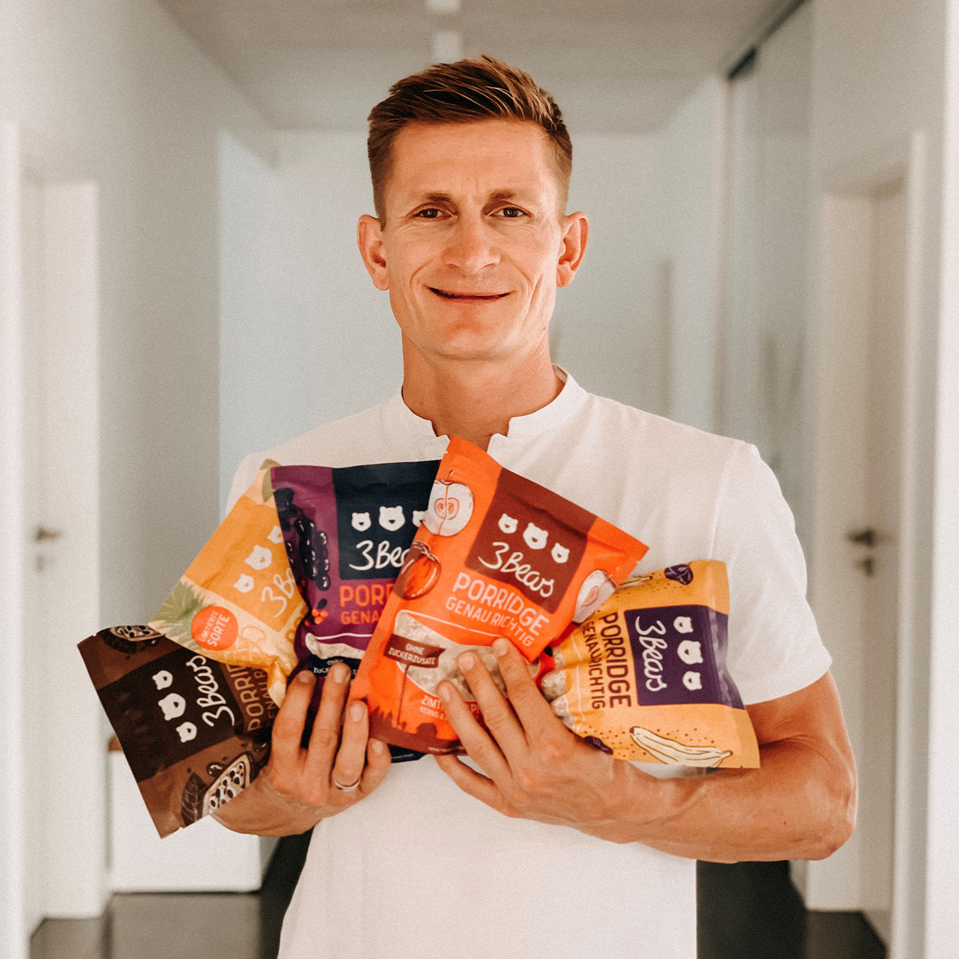 „Als Sportler ist das Frühstück die wichtigste Mahlzeit für mich, und natürlich achte ich sehr darauf, was ich esse. Auch was meine Familie isst. Als ich 3Bears entdeckt habe, hat mich nachhaltig beeindruckt, dass sie Haferflocken auf ein neues Level heben.”