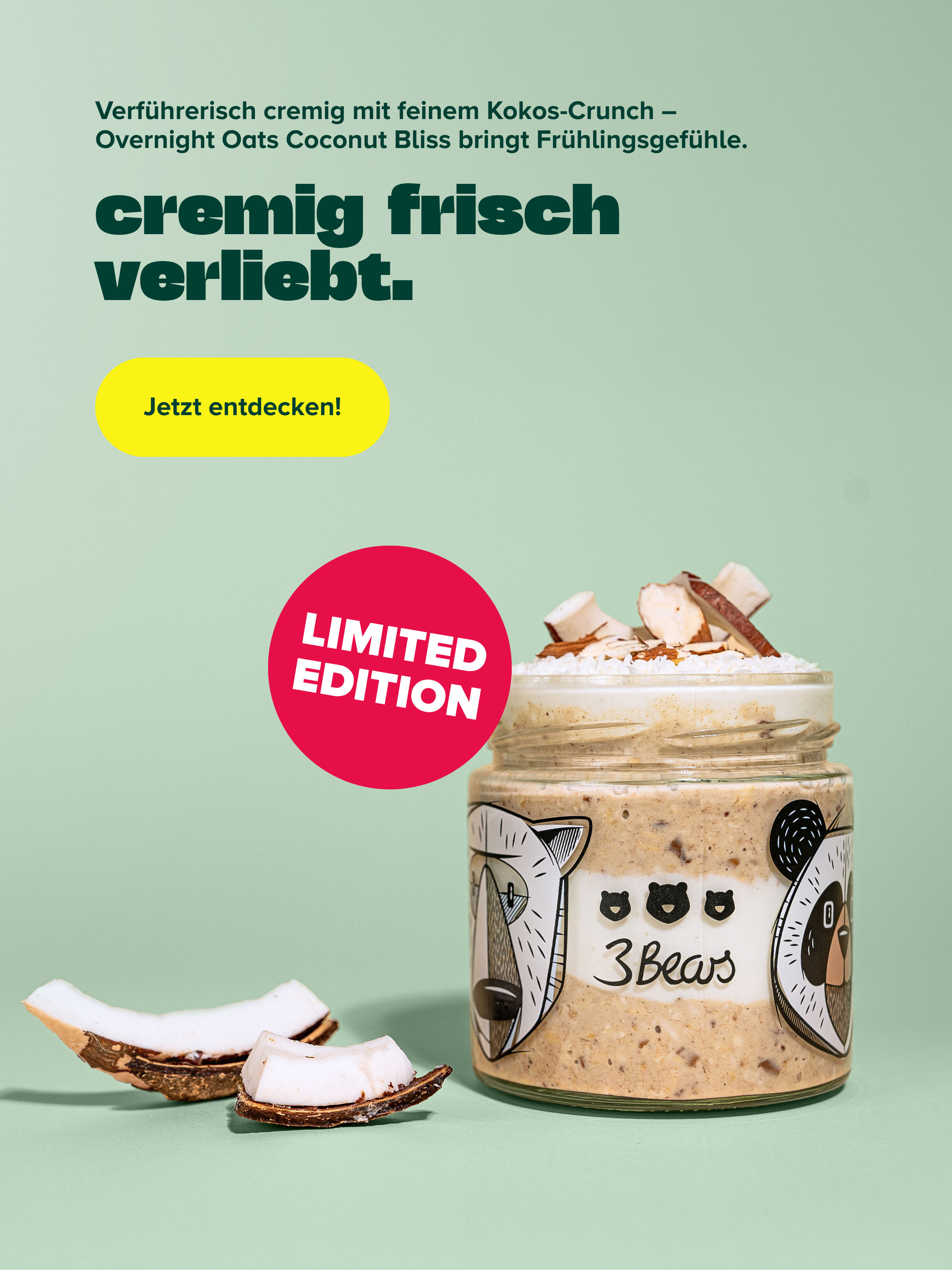 Bei 3Bears dreht sich alles um dich und deinen Morgen. Wir sind ein kleines Team von Food-Enthusiasten am Standort München und stehen jeden Tag mit einer Mission auf: dein Leben mit den wohl leckersten Hafer- & Porridge-Produkten ganz ohne Industriezucker zu bereichern! Unser Fokus liegt auf Overnight Oats, Granola, Porridge und Hafer-Riegel – den ultimativen Superstars für einen perfekten Start in den Tag.