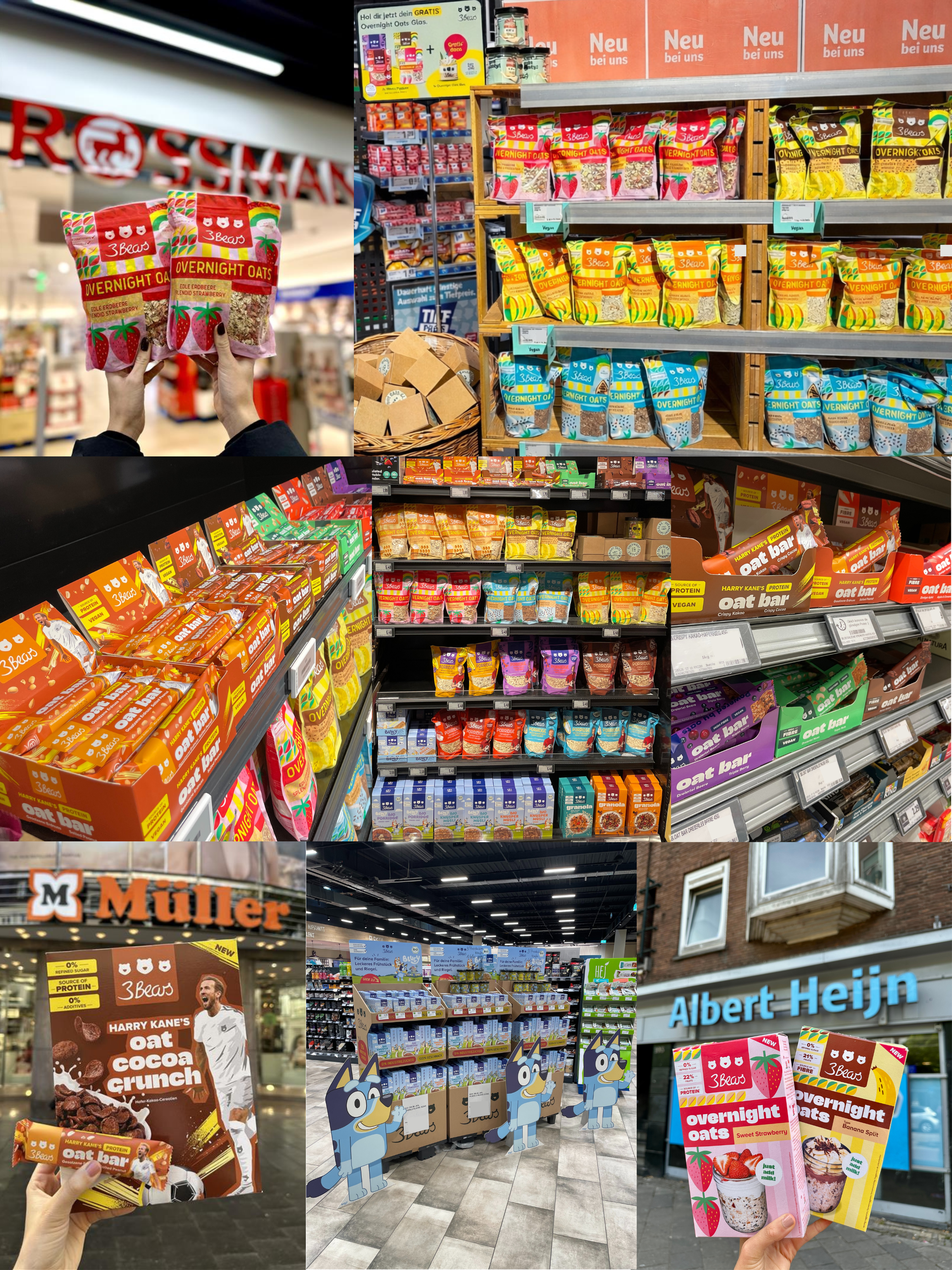 Overnight oats, cereals, oat bars, porridge, granola and our Bluey organic products are available in our online shop and in selected retail chains in Germany, Austria, Switzerland and the Netherlands. You will find a selection of our most popular varieties in stores. Our complete range is available online.