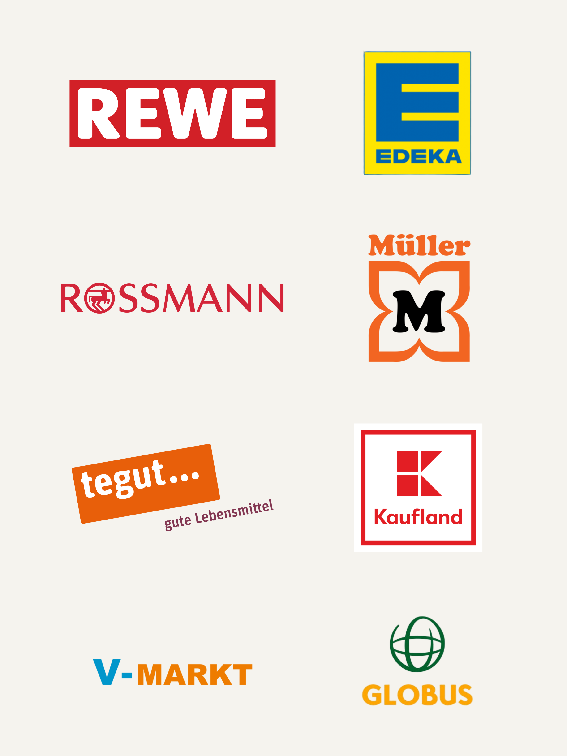 Rewe | Edeka | Müller | Globus | Kaufland | V-Markt | Karstadt | Coop | Billa