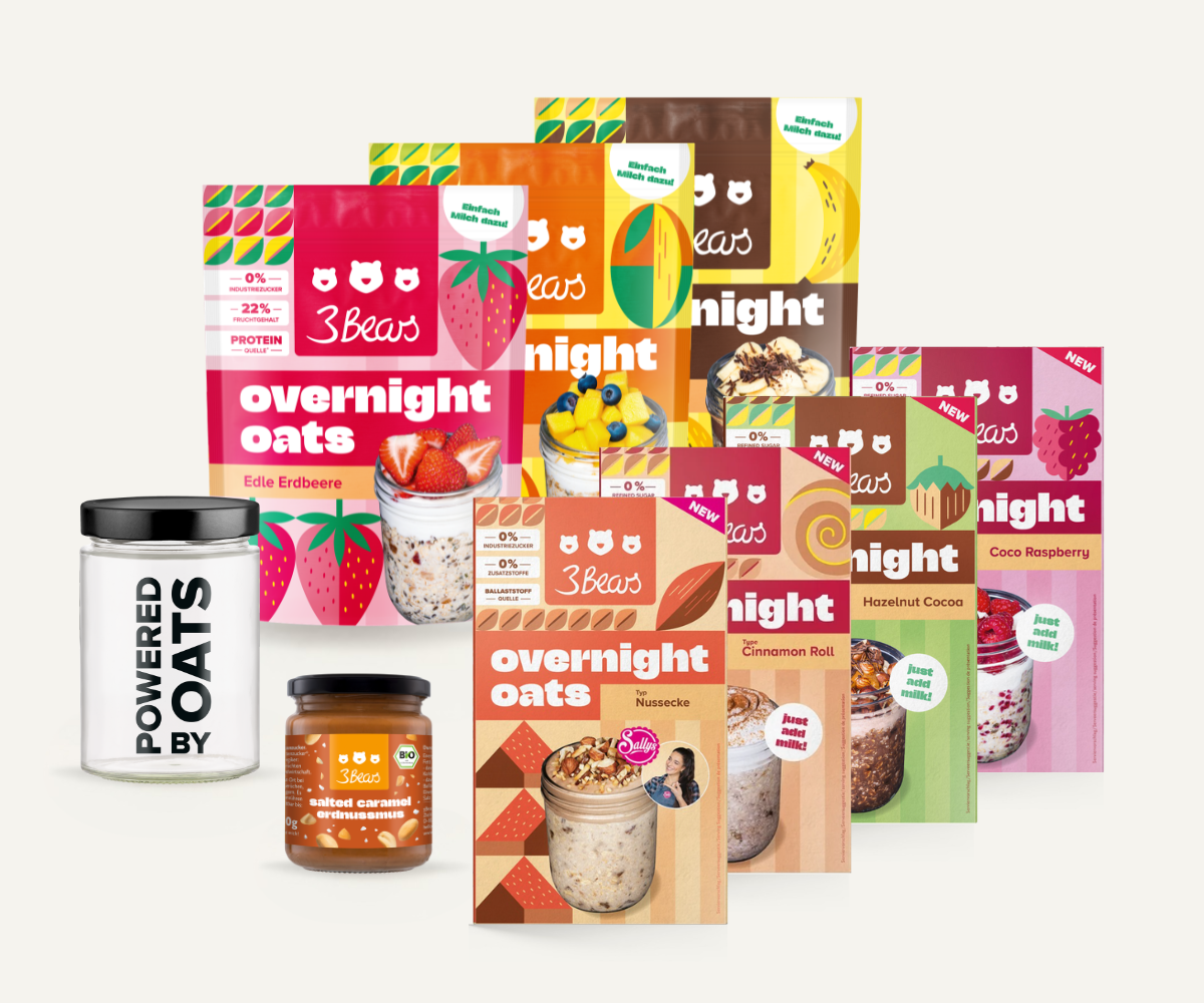 We founded 3Bears in 2016 because we were frustrated by how much sugar was hidden in so many foods. We brought porridge to Germany because for us it makes the perfect, wholesome breakfast. You can now get pretty much everything related to oats from us: overnight oats, bars, granola and accessories. And you can trust us to always stick to our principles. There is no industrial sugar or additives in our products, they are always 100% plant-based and sustainability is deeply rooted in us.
