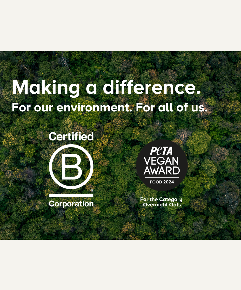 We founded 3Bears in 2016 because we were frustrated with how much sugar was in so many foods. We brought porridge to Germany because we think it's the perfect basis for a wholesome breakfast. You can now get pretty much everything to do with oats from us: overnight oats, bars, granola and accessories. And you can trust us to always stick to our principles. Our products contain no industrial sugar, no additives, they are always 100% plant-based and sustainability is deeply rooted in us.