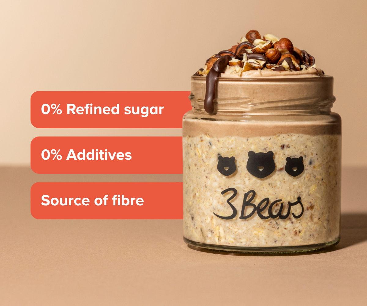 We founded 3Bears in 2016 because we were frustrated by how much sugar was hidden in so many foods. We brought porridge to Germany because for us it makes the perfect, wholesome breakfast. You can now get pretty much everything related to oats from us: overnight oats, bars, granola and accessories. And you can trust us to always stick to our principles. There is no industrial sugar or additives in our products, they are always 100% plant-based and sustainability is deeply rooted in us.