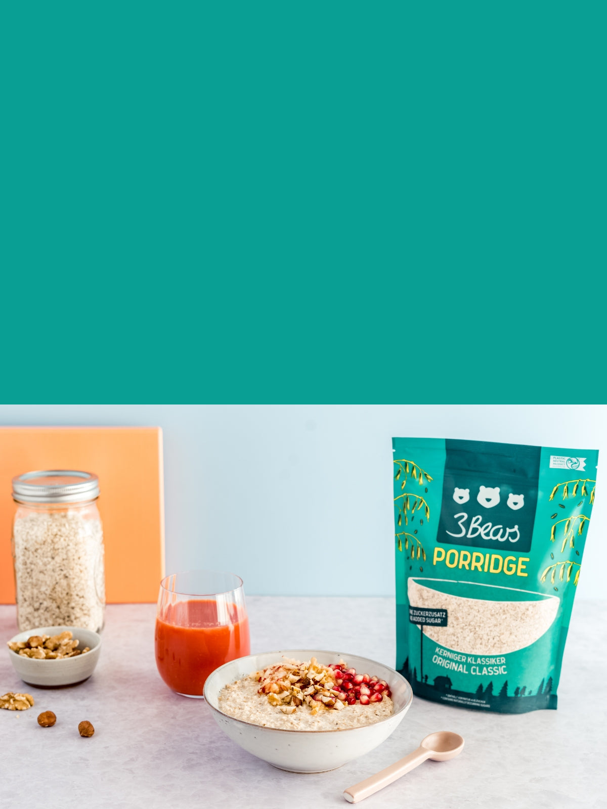 Dabei geht es bei 3Bears um mehr als Haferflocken in Tüten. Während der letzten sieben Jahre haben wir unermüdlich daran gearbeitet leckere Frühstücksprodukte ohne Industriezucker auf dem deutschen Markt zu etablieren. Dafür haben wir Gründer unsere