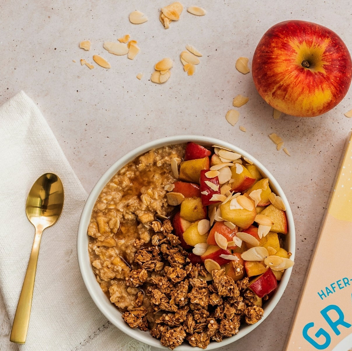 Warmes Porridge mit weichgekochten Apfelstückchen und crunchy Granola... klingt wie ein wahr gewordener Herbsttraum, oder? Probier es jetzt aus!