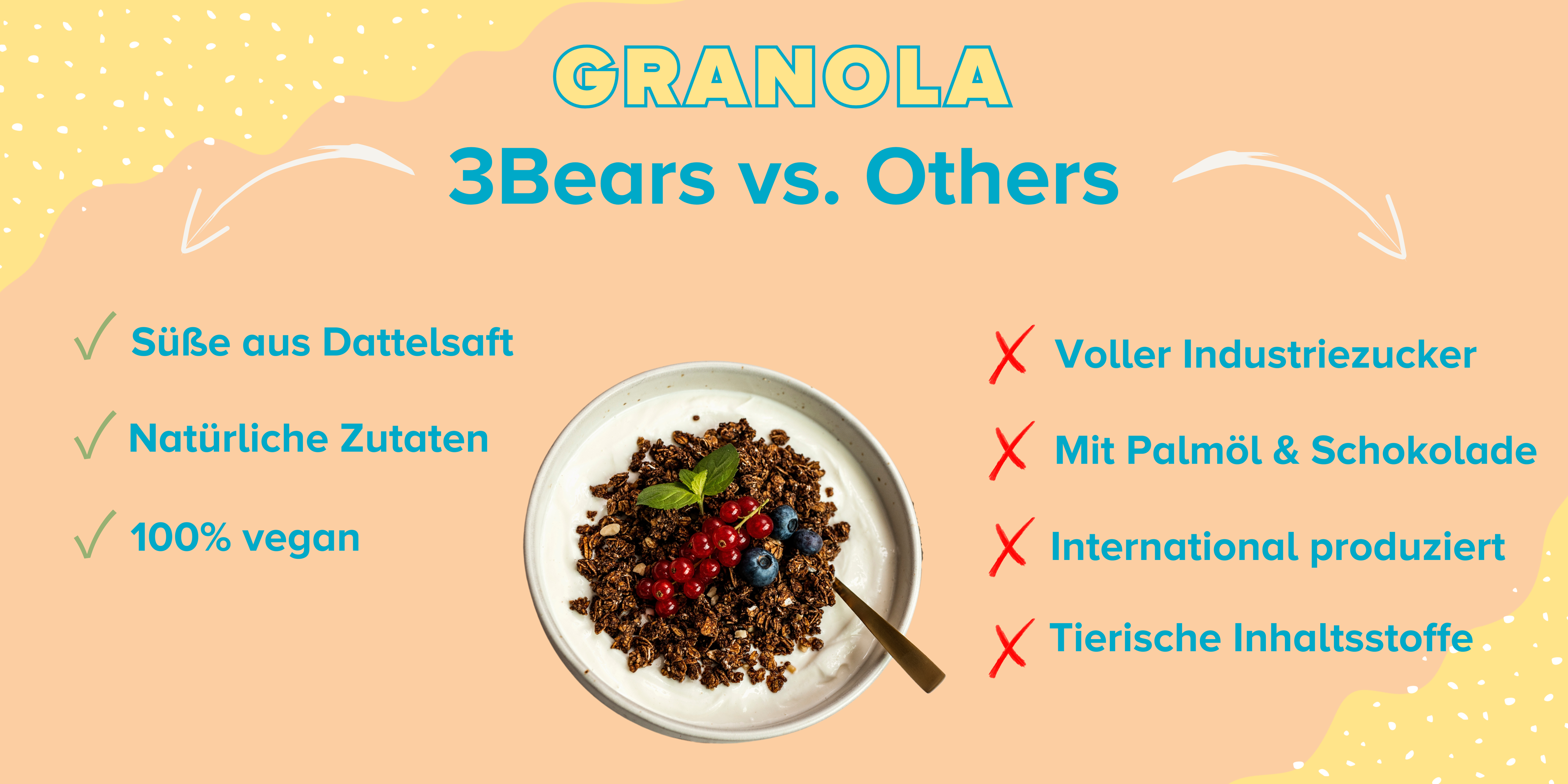 In der Vergangenheit habe ich schon öfters mit 3Bears im Rahmen von Kooperationen zusammengearbeitet. 3Bears teilt meine Leidenschaft für hochwertige Lebensmittel, die nicht nur mega lecker, sondern auch vollwertig sind. Deswegen war ich so begeistert von der Idee ein Granola zu entwickeln, das genau diese beiden Komponenten miteinander vereint – es ist komplett ohne Industriezucker hergestellt und schmeckt wie selbst gebacken!