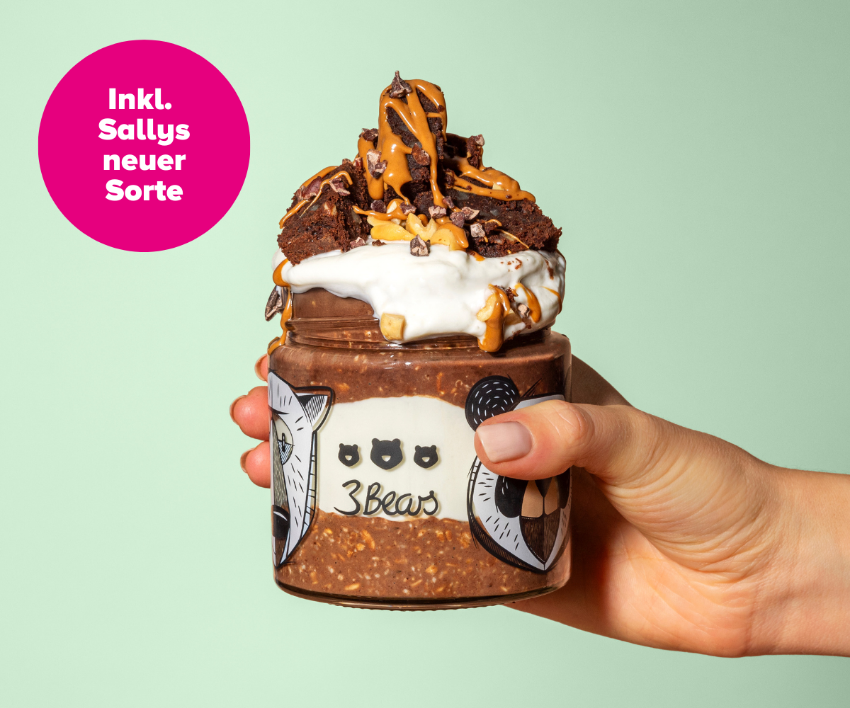 Gemeinsam mit Sally von Sallys Welt haben wir eine Sorte entwickelt, die Dessert-Vibes direkt ins Frühstück bringt: Peanut Brownie Overnight Oats. Vollkorn-Haferflocken, geröstete Erdnüsse, feiner Kakao und knusprige Kakaokernstückchen verschmelzen zu cremigen Overnight Oats – für echtes Brownie-Feeling zum Frühstück. Perfekt für alle, die morgens wenig Zeit haben, aber nicht auf Genuss verzichten wollen: Meal Prep, aber make it Brownie.Zutaten & Nährwerte