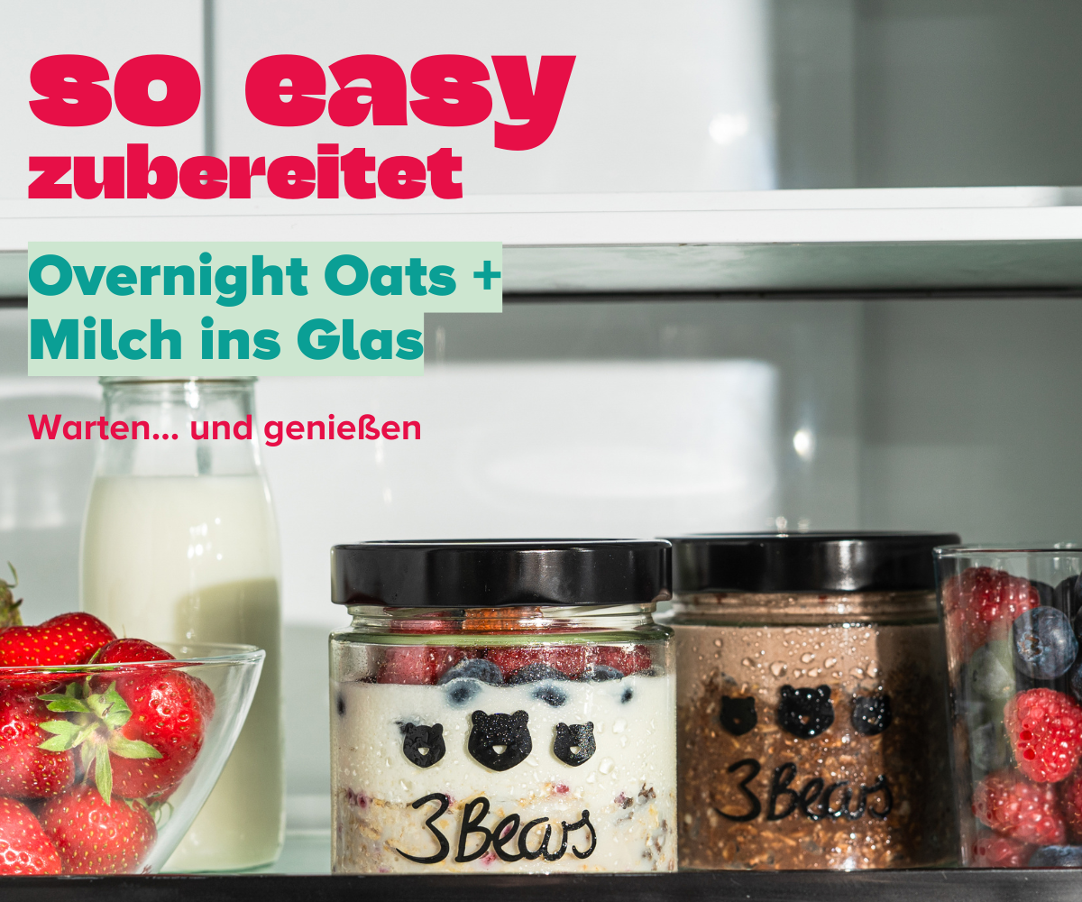 Einfacher war leckeres Frühstück noch nie, denn unsere Overnight Oats machen sich quasi von selbst über Nacht im Kühlschrank. Mehr Zeit für dich am Morgen ❤️ Während deine Oats im Kühlschrank quellen (und chillen), startest du ab sofort immer ganz gechillt in den Tag. Egal wie, egal wo. Sichere dir jetzt die neuen Overnight Oats Sorten Haselnuss Kakao und Kokos Himbeere! Die Sorten, die dir bisher zu deinem Frühstücksglück noch gefehlt hatten.Zutaten & Nährwerte